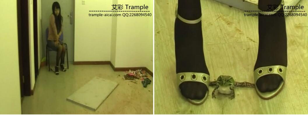 黑丝凉拖高跟暴踩N只大牛蛙,用鞋跟在牛蛙嘴上不停抽插