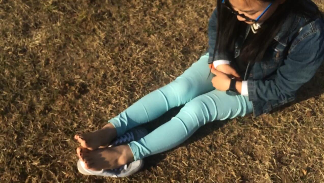 【恋足】高中妹子玩弄自己穿了一天充满汗味的臭白袜和裸足