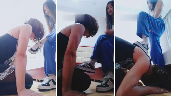 【思诺】小白鞋黑丝全体重踩踏-97LZTD-83506940