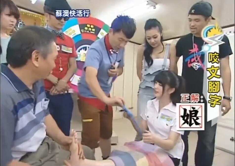 一个老综艺节目的脚底写字环节,女主超漂亮!