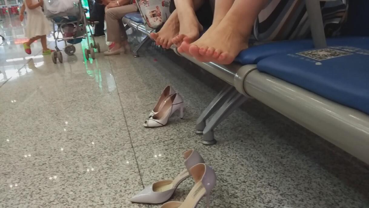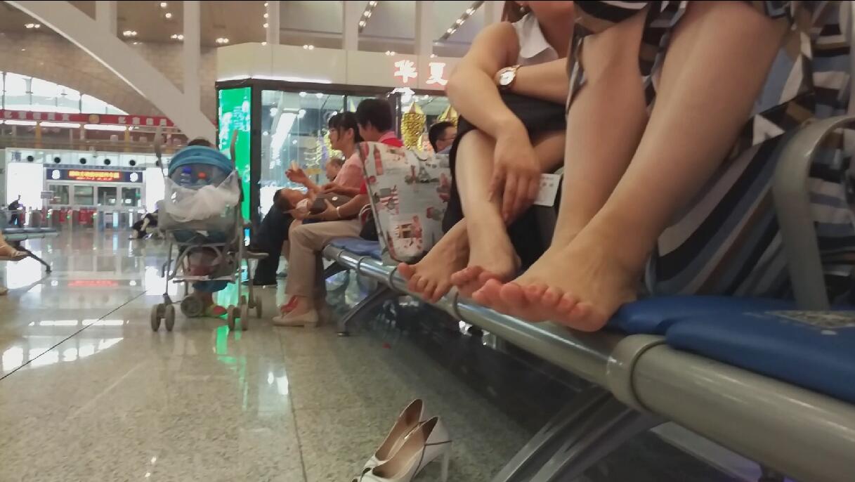 候车室短丝少妇脱鞋晾脚动作很多好似摸拍[0523]