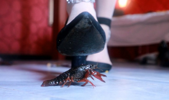 芊芊要和男朋友约会,衣服丝袜高跟鞋已经穿好了,但是见男朋友一定要化化妆。男友等急了,芊芊边电话边化妆,告诉男友不要急,马上就好了。这时候一群群的小龙虾悄悄地爬到芊芊脚下,芊芊毫不知情,继续边化妆边跟男朋友聊电话。芊芊坐在椅子上化妆,和男友聊天,脚也随时更换着姿势,无意间踩到了很多小龙虾,毫不知情的把小龙虾脑子都踩爆出来。之后芊芊站起来找东西,在屋里走动,又踩死了好几个。 终于大功告成了 芊芊踩着高跟鞋跨步走向屋门,最后一只小龙虾正好在途中,芊芊跨步走过去一脚正好踩在它身上,瞬间被踩扁了。一心想着约会的芊芊对此毫无察觉,开心的出门了,屋里留下一群小龙虾的尸体,支离破碎