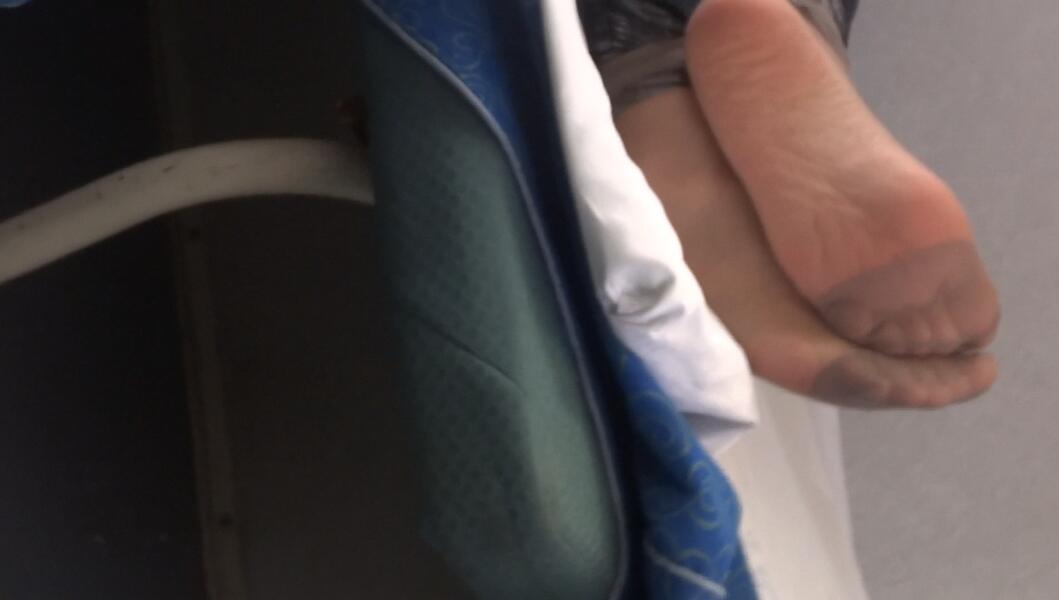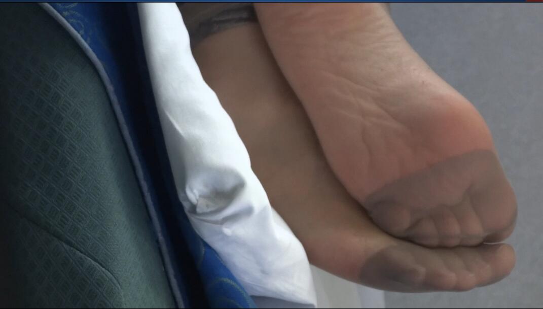 原创丝脚作品:火车卧铺列车员晾超薄咖啡色丝脚特写