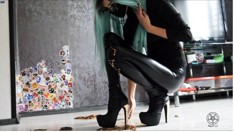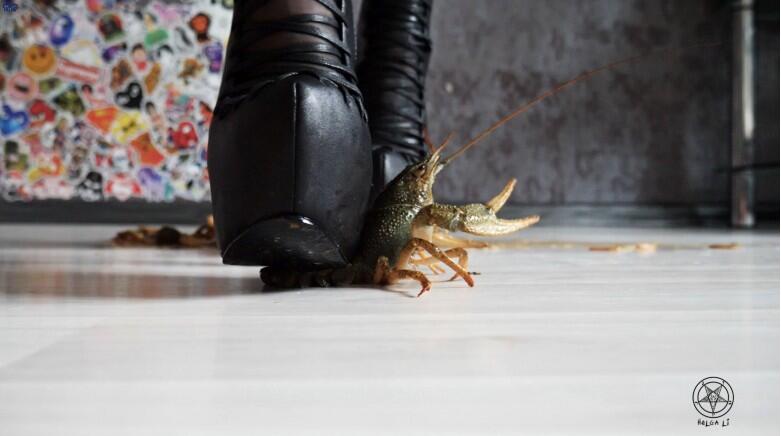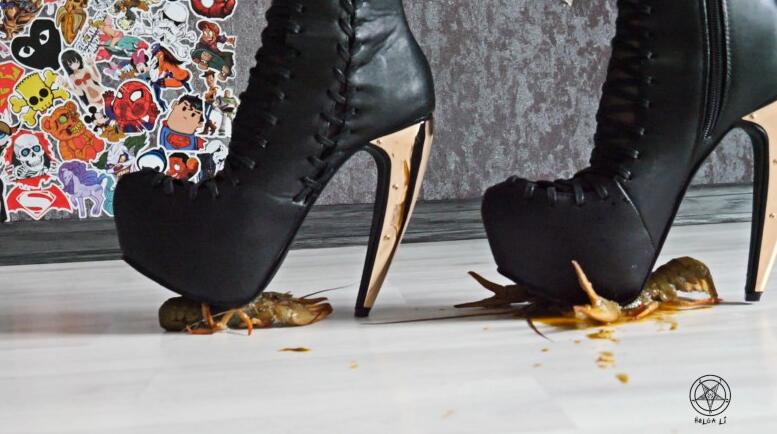 Helga Li女神金属高跟残忍踩龙虾