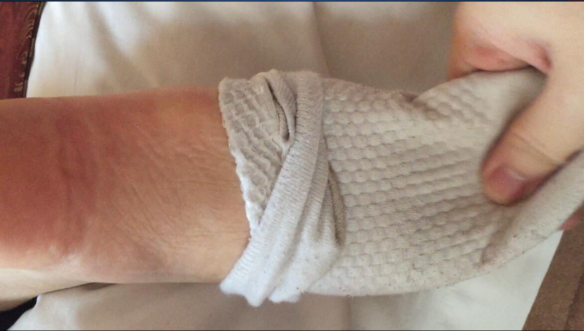 正在试凉鞋的美女丝袜上是印花还是汗渍呢