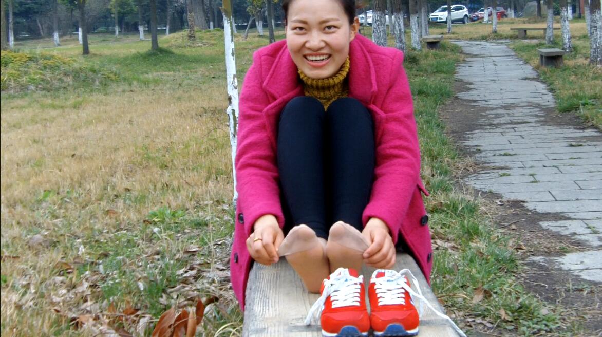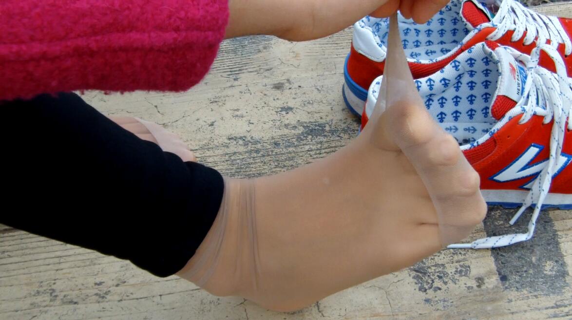 我跟她讲了两款丝袜的不同,妹子好奇的试穿起来