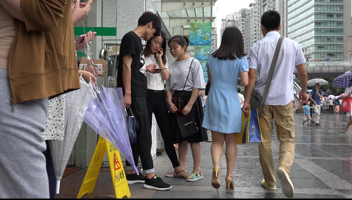 商场门口躲小雨的美女被我逮了个正着:等您坐沙发呢!