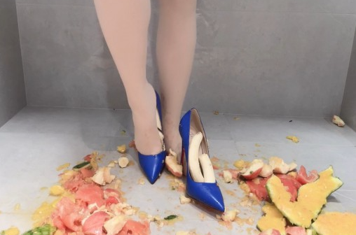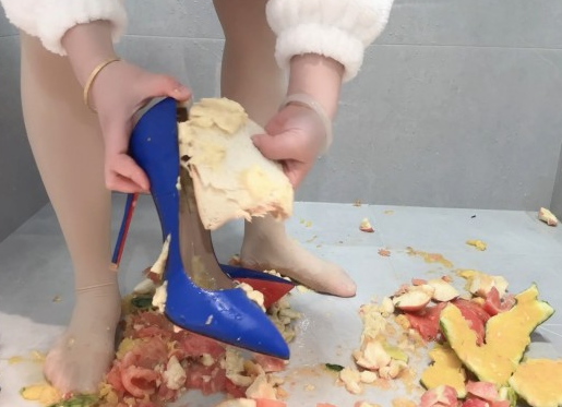 详细内容介绍:肉丝搭配蓝色红底高跟鞋,在西瓜上戳洞踩碎,番茄和苹果我也不放过,统统化作脚下的水果碎片吧!然后香蕉剥皮放入鞋内,踩上去,感受香蕉泥在高跟鞋内鞋外流淌。