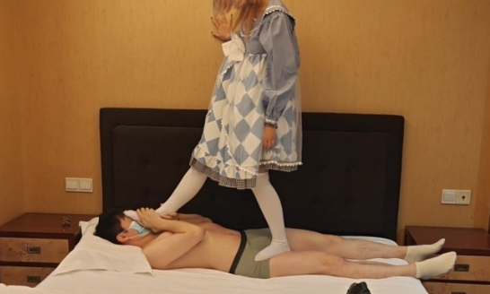 【影片预览及介绍说明】:超可爱的小姐姐又来了,我宣布,这个从我今年最喜欢的两个S其中之一变成我今年最喜欢的S没有之一。今天的穿搭也是非常可爱了,真的太可爱了,可是很有S倾向,体力也很好。全程一大半的时间都是毯子裆部蹦蹦跳跳的,偶尔跳累了,还有用穿着白丝的脚踹几下,然后又跺几脚。有时候又是在裆部连续十几连跳,全凭意志撑着,被踩的时候感觉有种说不出来的爽,感觉被踩死了也值得了,头一次有这样的感觉,而且她真的很喜欢站在上面跳,可能是我找了类似的视频给她。穿了一天的白丝味道也很好,很好闻,虽然不是很臭,能闻的出来出了一些汗,应该也是个小汗脚。虽然也有一百斤出头,但是脚底超级软,所以踩起来感觉没那么痛,舞蹈小姐姐和杺月的脚底就感觉硬,踩了快噶了那种,也不知道是不是心理作用,反正被这个小姐姐踩就超级舒服,感觉怎么踩我都能接受。 总体评价100分,超级爱这个。