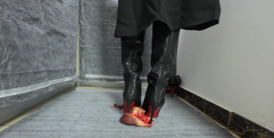 每刺进去一下,都会有一小股血顺着鞋跟流出来