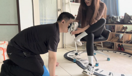 穿了几年的臭运动鞋加上臭白棉袜,强制贱狗闻,让贱狗把臭味道用鼻子吸没,强制消臭,不断羞辱贱狗。