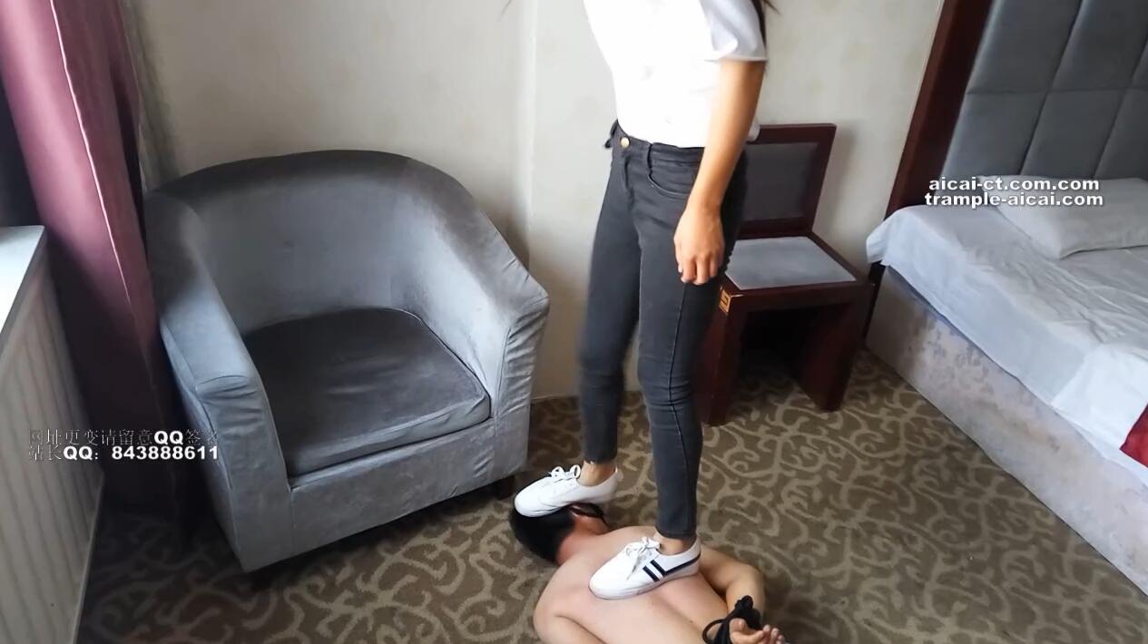 高挑美女的健身练习,帆布鞋践踏令添鞋闻袜Tian脚